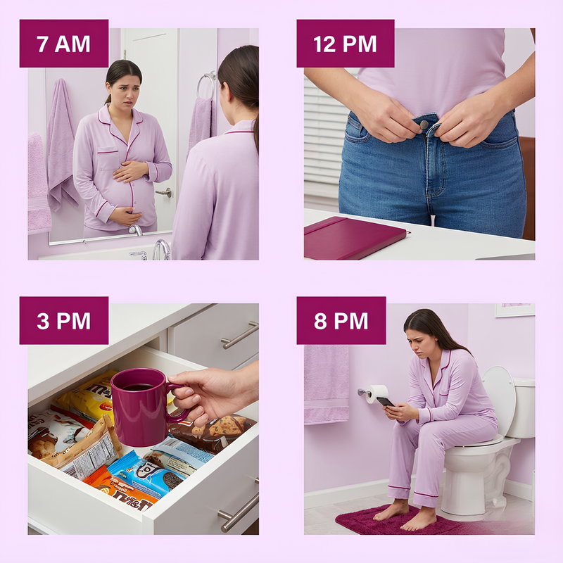 Your digestive system is supposed to move food smoothly through — breaking it down, absorbing nutrients, and eliminating waste. But when gut motility slows down (from stress, poor fiber intake, or imbalanced bacteria), food sits and ferments. Gas builds up. Bloating becomes your new normal. The result? That heavy, "6 months pregnant" feeling by dinnertime — no matter how "clean" you eat. Your gut isn't broken. It's just... stuck.